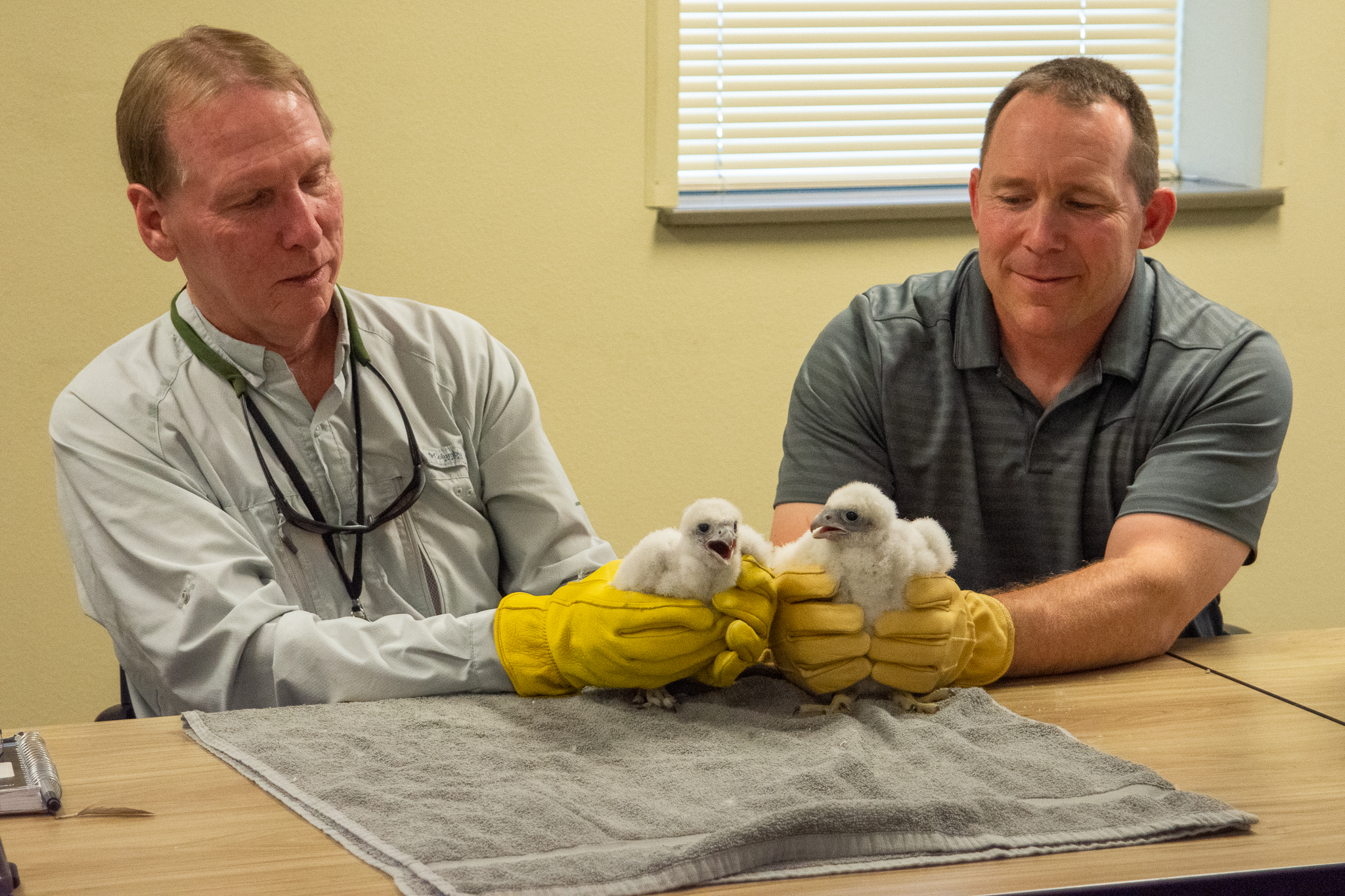 Wisconsin Public Service (WPS) is celebrating another memorable moment in a milestone year for its peregrine falcon program. A pair of chicks nesting at the company’s Weston Power Plant officially received their names and identification bands Monday, June 20.